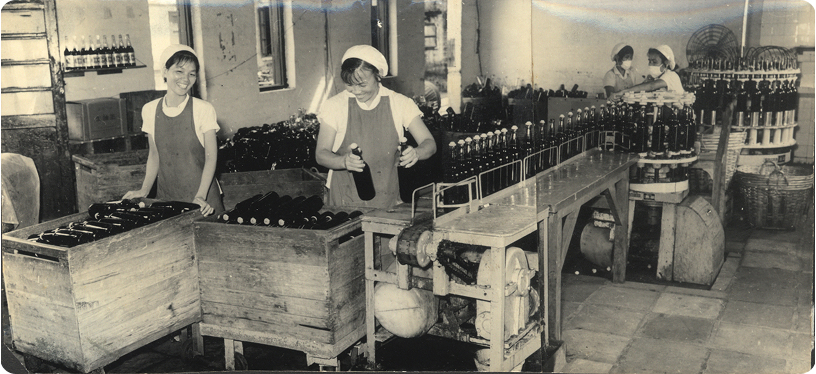 *图为第一台国产酱油真空注瓶机投入使用